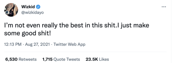 Nigerian musician, Ayodeji Ibrahim Balogun who is widely known as Wizkid has taken to social media to reveal he is not the best in the music scene.According to the multiple award-winning musician, he is not even the best in the music thing he is currently doing adding that he just does some good music and nothing more.