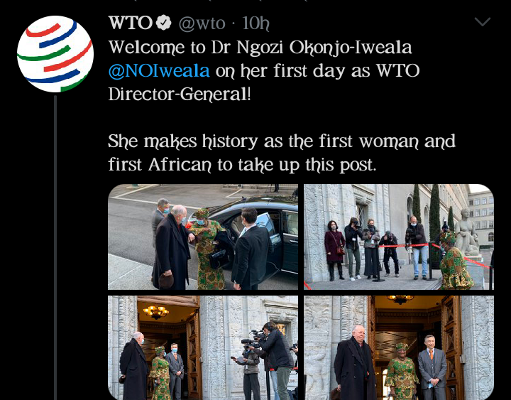 Congratulations to Dr. Ngozi Okonjo-Iweala has she resumes WTO office at Switzerland.