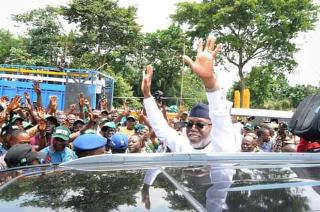PHOTOS: Ondo State Deputy Governor, Hon Lucky Aiyedatiwa, addressing former leadership of the NURTW at the entrance of the Governor’s office who came to welcome him on his arrival from Abuja,